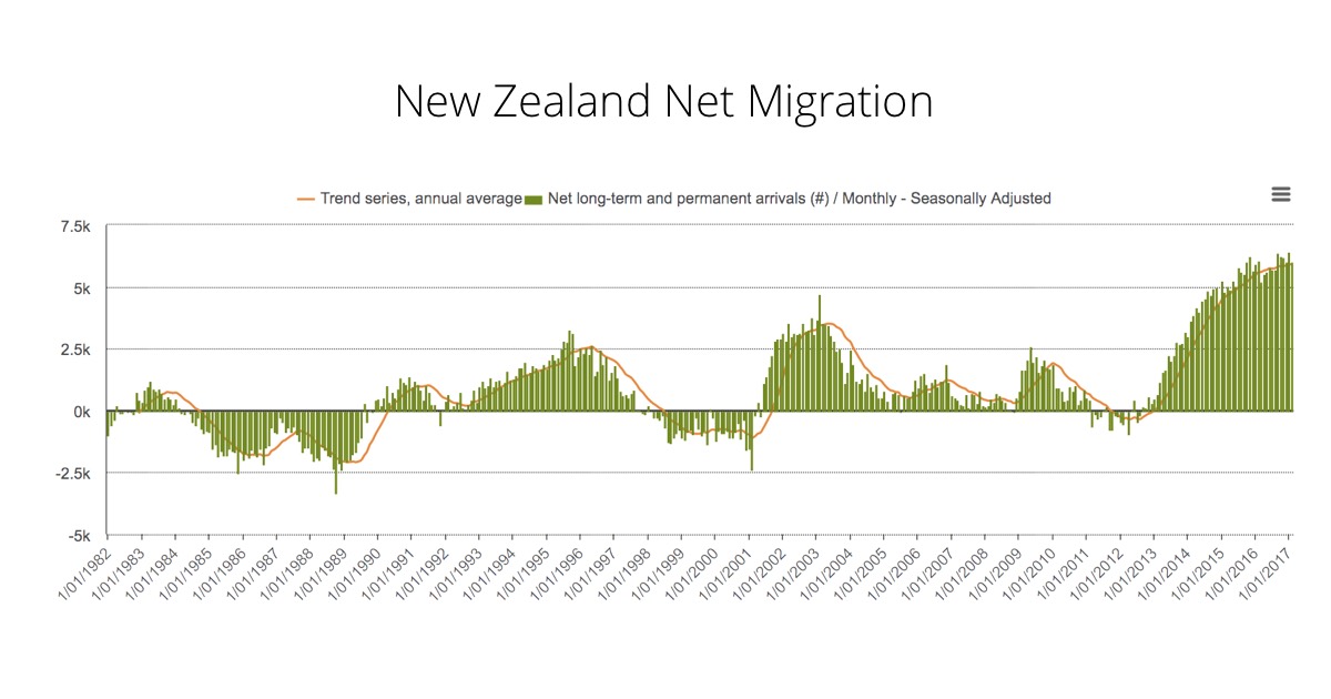 Immigration can be and often is positive for an economy – so long as it meets quite specific conditions. The effect is seldom large but it is positive if done right. That means there’s plenty of scope to do it wrong. In 2017 there can be little doubt that National is doing it wrong – and has been now for a couple of years. When it was first elected and the global financial crisis gripped the globe, National wound up foreign immigration. That provided a welcome buffer to the international downturn. But National did not turn the spigot off; indeed it opened it further and let the quality of economic migrants slip.